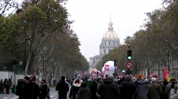 Unos pocos miles de sindicalistas y militantes de izquierda se manifestaron en las calles de París para apoyar las huelgas generales de sus vecinos del sur (España, Portugal, Grecia, Italia, Chipre y Malta) y también para dar una señal inequívoca a François Hollande, presidente de la República desde hace 6 meses, de que no está haciendo lo que se espera de él.