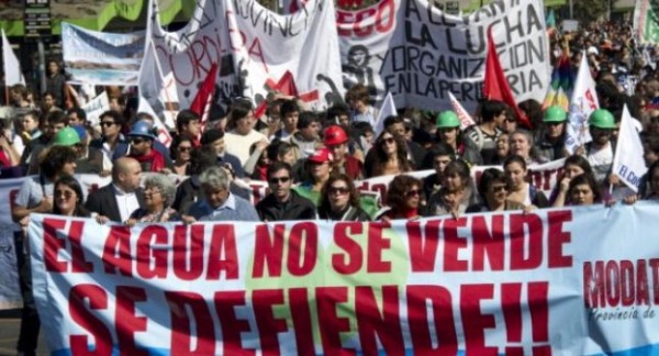 “¡El agua-es nuestra, por-eso-es-la-protesta!”, “¡El agua no se vende, se defiende”, vociferaban el lunes pasado (22 de abril) cientos de voces, muchas personas disfrazadas, con bailes y pancartas, consignas en contra de las autoridades de la derecha política -que gobernó en dictadura y estos últimos tres años- y de la Concertación -que gobernó los 20 años intermedios-.