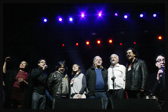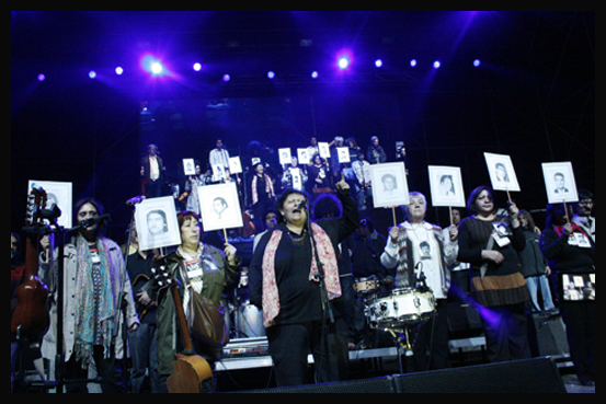 Encuentro conmemorativo por los Derechos Humanos realizado el sábado 08 de Junio en el Centro Cultural Estación Mapocho de Santiago de Chile. Concierto que une la música y la memoria, organizado por la Agrupación de Familiares de Detenidos Desaparecidos (AFDD) y el apoyo de connotados artistas Chilenos como lo son: Inti Illimani, Illapu, Francesca Ancarola, Nano Stern, Sol Y lluvia entre otros. Estos momentos han sido capturados por la fotógrafa Marcela Contardo Berríos.
