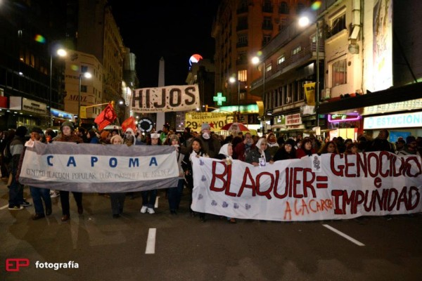 El jueves 18 de Julio se realizó un escrache, con movilización desde la Plaza de Mayo hasta las oficinas del genocida civil Pedro Blaquier, ubicadas en la calle Corrientes al 400. La marcha fue en pedido de justicia y contra la impunidad que envuelve el apagón en los pueblos de Lib. Gral. San Martin y de Calilegua de Jujuy la noche del 27 de Julio de 1976, donde la empresa Ledesma participo activamente junto con los militares en la detención de 400 compañer@s y la desaparición de 33 de ellos.