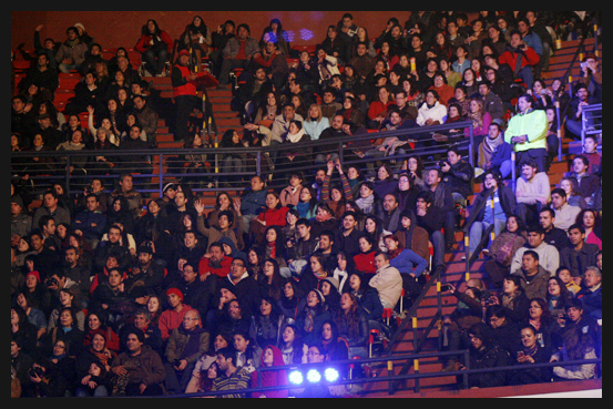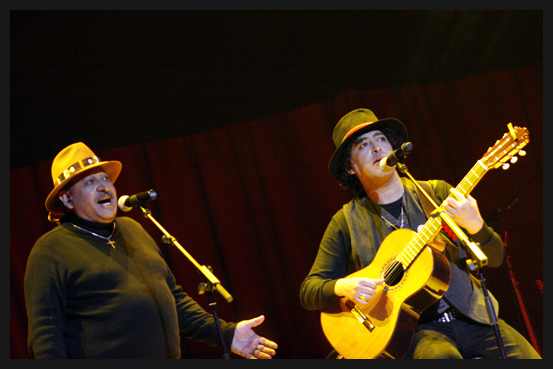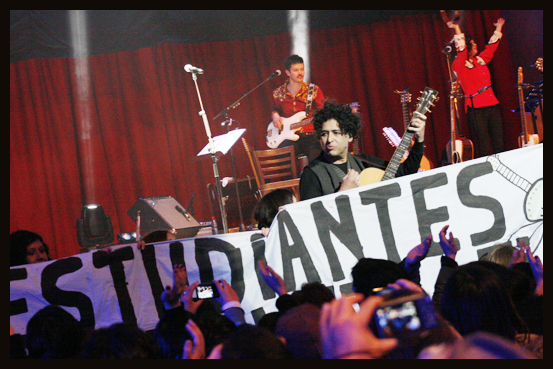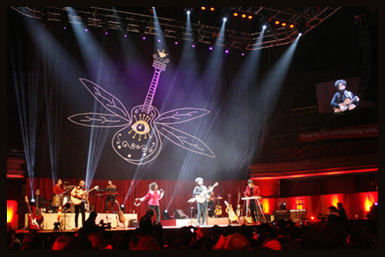 El concierto se fragmentó en oleadas musicales acústicas, rockeras y folklóricas, amenizadas con la guitarra magistral de Angelito Parra, integrante de la banda Los Tres.