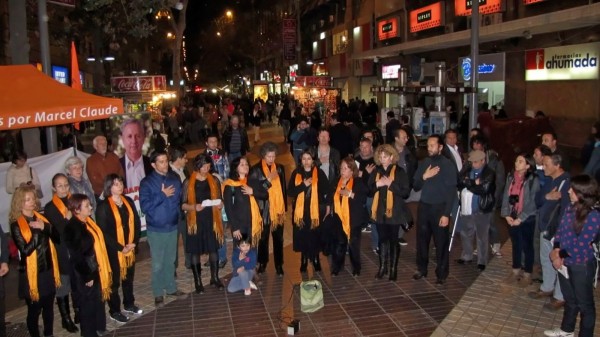 El coro Humanista Chileno dio – en pleno centro de Santiago de Chile- el marco a un pedido por la Paz, por el armisticio de los grupos en conflicto y por la no invasión de Siria. Sin embargo en el mismo lugar se observó la presencia de nazis, disparos y un clima de violencia explicita.
