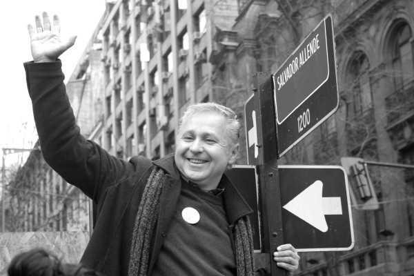 En el marco de las diferentes actividades que se están realizando en el mes de septiembre, fecha muy significativa para el pueblo chileno por el 40 aniversario del golpe de estado, el candidato presidencial humanista en un acto simbólico cambió el nombre de la céntrica calle Moneda por la de Salvador Allende.