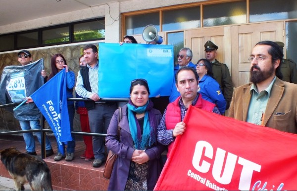 “Ellos no se van, nosotros los echamos” dijo a viva voz, Julio López, presidente regional de la ANEF de la Región chilena de Aysén, mientras introducían por la puerta de la Intendencia Regional un voluminoso sobre azul en señal de despido para “un gobierno que repudiamos” agregó el dirigente, ante los vítores de los asistentes.