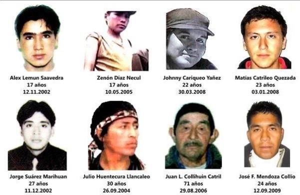 Queremos mencionar también a quienes han perdido la vida, entre ellos, Alex Lemun, Matías Catrileo, Jaime Mendoza Collío y Rodrigo Melinao, todos asesinados a balazos, los tres primeros por obra de funcionarios de Carabineros de Chile. Es de público conocimiento que la impunidad protege a quienes son responsables materiales y de mando en estos crímenes, así como de la desaparición del adolescente José Huenante de 15 años, a quien consideramos como el primer detenido desaparecido de origen mapuche en democracia.