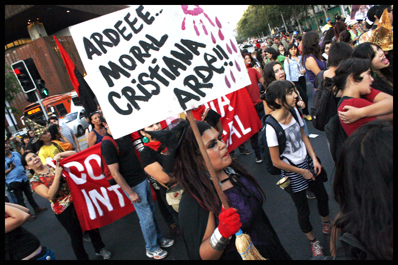 Hoy no han cambiado mucho los derechos de las mujeres Chilenas, en una sociedad donde los que legislan y otros que orientan desde las iglesias y son mayoritariamente personas con pensamiento patriarcal. Cientos de mujeres se manifestaron con cánticos y carteles por las principales calles de la ciudad de Santiago pidiendo respeto y justicia.