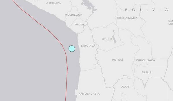 Un terremoto de magnitud 8,2° Richter afectó la zona norte de Chile y sur de Perú. El epicentro se localizó a 89 kms. de la ciudad de Cuya, a una profundidad 38,9 kms.