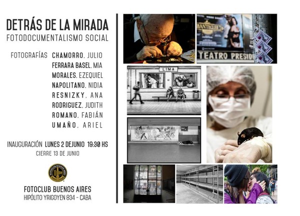 En el programa del 04 de junio del 2014, la fotógrafa Mía Ferrara Basel nos explica de qué se trata la exposición Detrás de la mirada: Fotodocumentalismo s ocial, que se expone en Fotoclub Buenos AIres, Hipólito Yrigoyen 834. Las obras son de Julio Chamorro, Mia Ferrara Basel, Ezequiel Morales, Nidia Napolitano, Ana Resnizky, Judith Rodríguez, Fabián Romano y Ariel Umaño. La exposición cierra el 13 de junio.