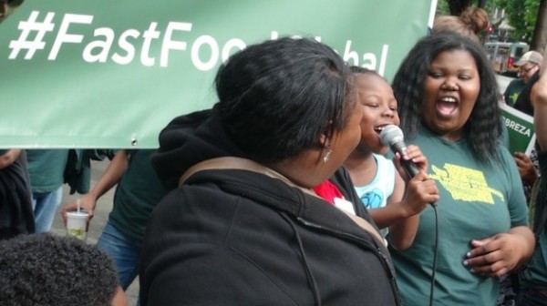 Trabajadores de comida rápida en huelga por mayores salarios en la ciudad de Nueva York, en julio de 2013. Crédito: Annette Bernhardt/cc by 2.0