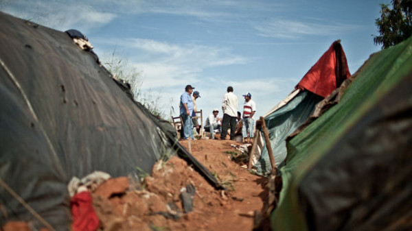 Reunión del grupo de familiares en el campamento de Curuguaty en lucha por la liberación de doce campesinos imputados por las 17 muertes ocurridas durante un desalojo policial de los sin tierra, que ocupaban una hacienda cuya propiedad se disputaban el empresario Blas Riquelme y el Estado paraguayo./ Pablo Tosco/Oxfam Intermón