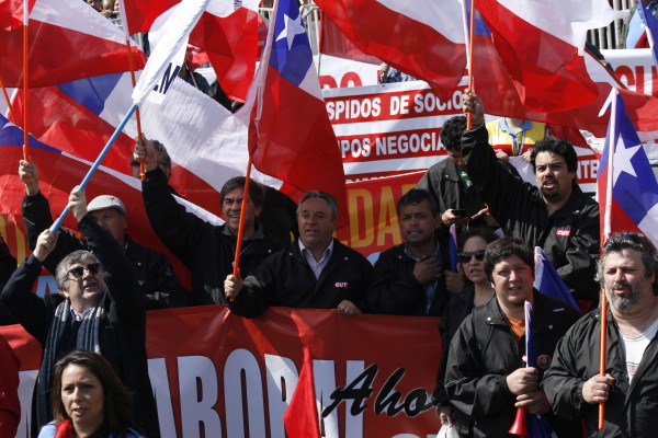 Miles de trabajadores Chilenos marcharon por la principal avenida de Santiago pidiendo una reforma laboral con sueldos dignos, transporte de calidad, justicia, demandando al Ejecutivo que cumpla su palabra y las reformas laborales sean enviadas en octubre de este año al Parlamento.