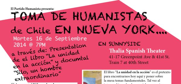 Nueva York – El Martes 16 de Septiembre de 2014 se rindió homenaje especial a Silo en su cuarto aniversario desde que partió. En el evento se presento el documental “Silo, un hombre extraordinario” dirigido por Ana Catherine L’Homme y el libro “La unidad en la acción” escrito por Dario Ergas Benmayory. Los dos provenientes de Chile visitaron la Gran Manzana.