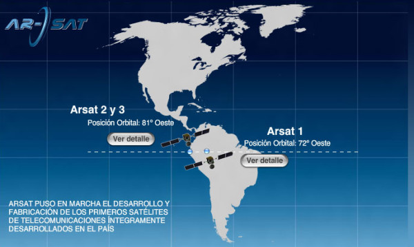 Argentina colocó en órbita esta tarde un satélite geo estacional que ofrece servicios de telecomunicaciones a todo el territorio nacional -incluidas las Islas Malvinas-, la Antártida, los países limítrofes: Chile, Uruguay, Paraguay, sur de Brasil y Bolivia. La construcción del Arsat-1 es producto del desarrollo científico argentino y fue lanzado desde Kourou, en  la Guayana francesa. El Arsat-2, ya concluido y en periodo de prueba, permitirá ampliar el área de cobertura a toda Sudamérica y 3 cubrirá norte américa.