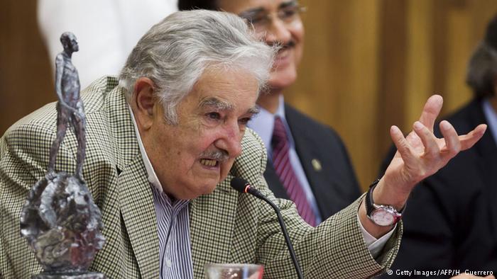 «A uno le da la sensación, visto a la distancia, que se trata de una especie de Estado fallido, que los poderes públicos están perdidos totalmente, están carcomidos”. (Entrevista con Foreing Affairs Latinoamérica, tras los sucesos de Iguala. El gobierno uruguayo aclaró luego que no ve a México como un Estado fallido. La foto muestra a Mujica en la Feria del Libro de Guadalajara, el 6 de diciembre)