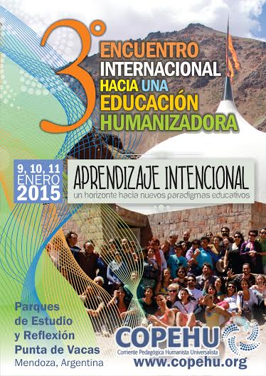 La Corriente Pedagógica Humanista Universalista (Copehu) realizará el Tercer Encuentro Internacional hacia una Educación Humanizadora en el Parque de Estudio y Reflexión Punta de Vacas (Mendoza, Argentina) del 9 al 11 de enero de 2015. El lema convocante al evento es “Aprendizaje Intencional: Un horizonte hacia nuevos paradigmas educativos”, para el mismo se convoca a quienes compartan la necesidad de abrir nuevos horizontes para trabajar en un camino de transformación de la educación y de la conciencia humana. Se trata de reunir a educadoras y educadores que sientan la urgencia de crear un espacio de reflexión y de construcción de ámbitos significativos que faciliten el intercambio y el estudio sobre qué educación queremos.