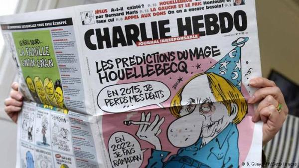 Muchas personas consideran que la nueva novela del autor francés Michelle Houellebecq “Sumisión” es una provocación antimusulmana, algo que le viene a las mil maravillas al semanario “Charlie Hebdo”, que hace sátira del islam. Esta revista siempre ha causado revuelo con sus encabezados y caricaturas provocadoras. Puesto que ya había sido varias veces blanco de ataques terroristas, su redactor jefe se encontraba bajo protección policial. El nombre del semanario, con un tiraje de aproximadamente 75.000 ejemplares, hace referencia a la figura de cómic estadounidense Charlie Brown. En 2006, la redacción, integrada por unos 20 miembros, publicó las controvertidas caricaturas de Mahoma en Francia.