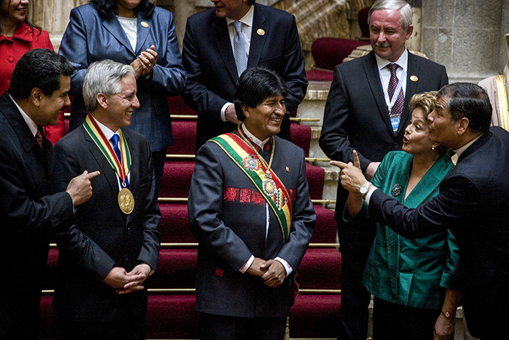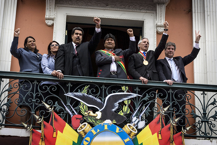 Para la asunción de su tercer período como presidente, Evo Morales recibió a los presidentes Rafael Correa, de Ecuador; Dilma Rousseff, de Brasil; Nicolás Maduro, de Venezuela; y Horacio Cartes, de Paraguay. El acto tuvo lugar en la sede del Parlamento, en La Paz, donde se realizó la Asamblea Legislativa.
