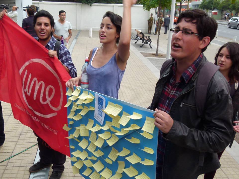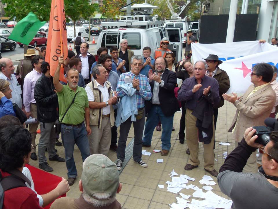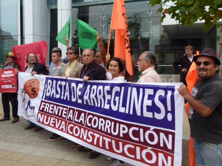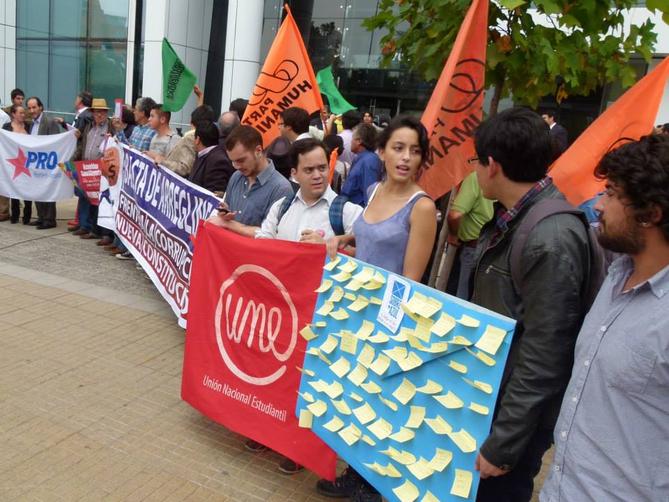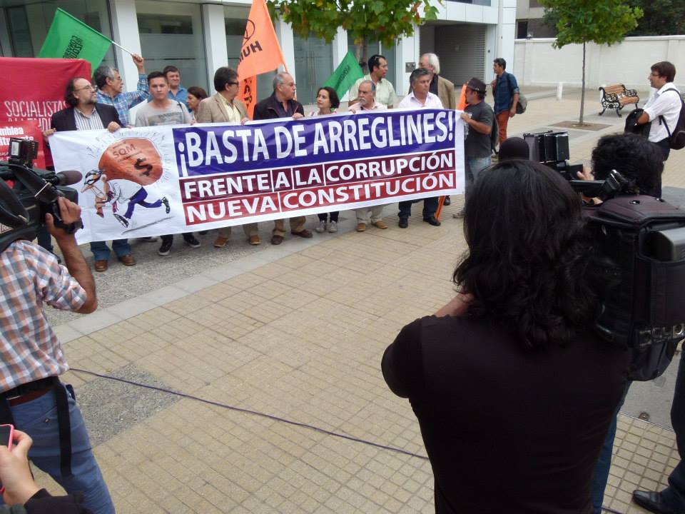 Manifestación frente al Tribunal Constitucional hoy en Santiago de Chile, denunciando la ilegitimidad de este Tribunal validado por la Constitución espúrea de Pinochet y Lagos y exigiendo Asamblea Constituyente.