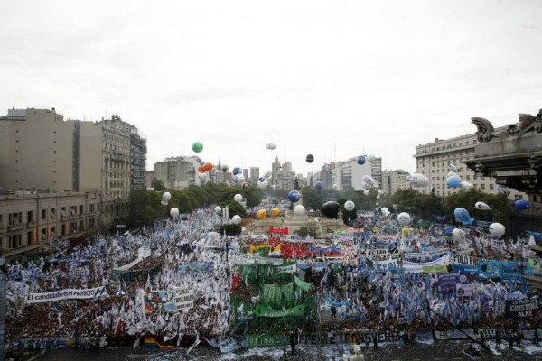 Ir hacia la Plaza de los Dos Congresos caminando desde 20 cuadras ya hacía sentir el latir de un pueblo expresándose sin violencia ni maltratos, demostrando que reforzaba un rumbo transformador en una buena dirección. Era cruzarse con esas madres junto a sus hijos, para quienes el esfuerzo de movilizarse desde los barrios un día de lluvia con toda la familia no fue un impedimento y decidieron estar allí, festejando y acompañando junto a los militantes de su organización; era ver a ese grupo de abuelos con el espíritu joven intacto cantando que iban a cambiar el mundo; o estar al lado de ese hombre mayor que escuchando a la Presidenta en un momento emocionante de su discurso me miró y me dijo “es un fenómeno esta mujer”, mientras aplaudíamos sintiendo la unión de quienes se juntan para manifestarse por la mejor de las causas; o era sentir a esos cientos de miles de jóvenes que retomaron la participación política, ahora con alegría, de modo no-violento, que mientras militan son bondadosos y solidarios, y hoy están acá, en la plaza del pueblo. Ese pueblo quizás ausente de los medios de comunicación, anónimo en las tapas de los diarios, pero que con sus profundas aspiraciones y propósitos de anhelar un mundo mejor, acompaña y direcciona a los procesos históricos.