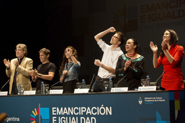Jóvenes dirigentes sociales y políticos de América Latina y Europa debatieron el sábado 14 de marzo sobre los desafíos de la Nueva Generación ante la disputa del presente, en el marco del cierre del Foro Internacional por la Emancipación e Igualdad, organizado por el Ministerio de Cultura de la Nación en el Teatro Nacional Cervantes.