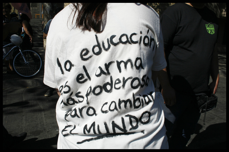 A la convocatoria del Colegio de Profesores se sumó la Coordinadora Nacional de Estudiantes Secundarios marchando por la Alameda en un clima de alegres cánticos e ingeniosas pancartas pidiendo por la mejora salarial del gremio y por una educación pública y de calidad.