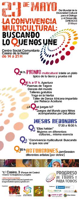 • Esta mesa de diálogo está dentro de la Jornada por la Diversidad Cultural que se celebrará el día 23 de mayo en el Centro Comunitario Casino de la Reina de Madrid, y que organizan “Mixtura Lavapiés”- Convergencia de las Culturas y la Asociación Deportiva Dragones de Lavapiés.