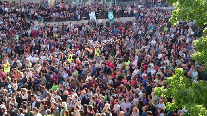 - La Plaza del Museo Reina Sofía acoge repleta de personas y de ilusión por el cambio a representantes de candidaturas municipalistas de todo el país.