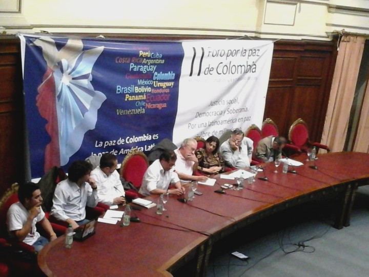 Reunidos en el II Foro por la Paz de Colombia: 120 organizaciones y movimientos sociales y políticos, más de 800 ciudanados/as latinoamericanos/as, exiliados/as de la hermana Colombia, académicos/as e intelectuales, artistas, parlamentarios/as, luchadores/as sociales y populares, trabajadores/as urbanos, campesinos/as, indígenas, afrodescendientes, mujeres, comunidad LGBTI, jóvenes y estudiantes, de Argentina, Brasil, Colombia, Ecuador, Chile, México,Paraguay, País Vasco, Uruguay y Venezuela, declaramos unánimemente nuestro compromiso con la vida y la democracia, valores que esperamos superen los desastres de la guerra y la muerte.