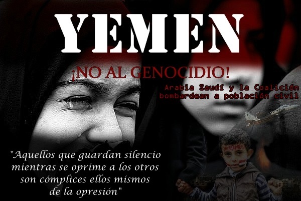Condenamos la complicidad de los gobiernos occidentales con la agresión de la mal llamada alianza árabe a Yemen, su apoyo a los bombardeos contra el pueblo yemení y su actitud de desoír los llamamientos de la ONU.