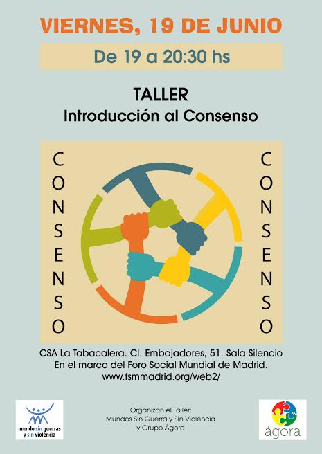 El viernes 19 de junio, a las 19 horas, tendrá lugar el taller «Introducción al Consenso». Será en la Sala Silencio del CSA La Tabacalera, de Madrid (C/ Embajadores, 51).