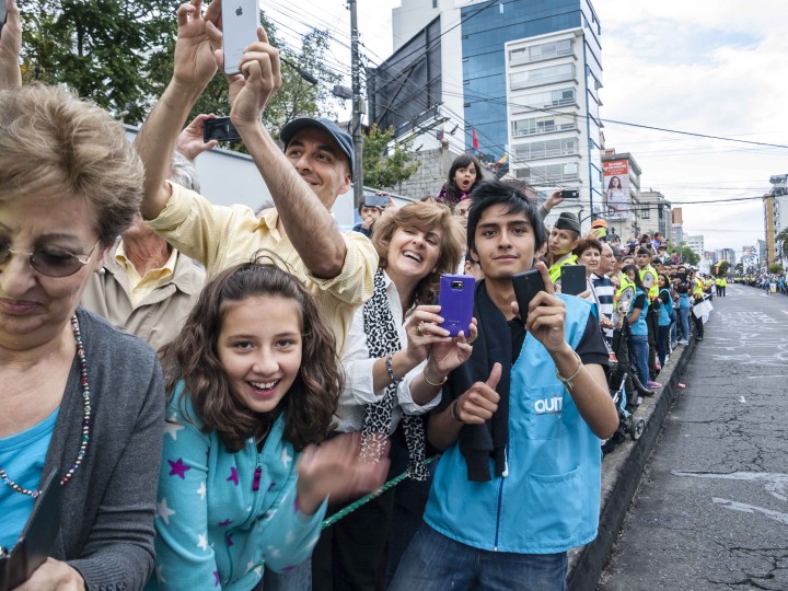 Masiva bienvenida a Francisco, en las calles de Quito
