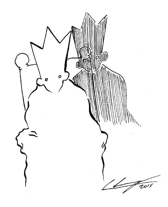 Padre Compartido no dijo nada. Se levantó lentamente de su lecho, y caminó hacia el no muy lejano fondo de su hogar. Allí rebuscó hasta encontrar, envuelta en más pieles de foca, la vieja estatuilla de madera. Se acercó al emperador y la puso a la altura de su cabeza, comparando al emperador con la figura tallada.