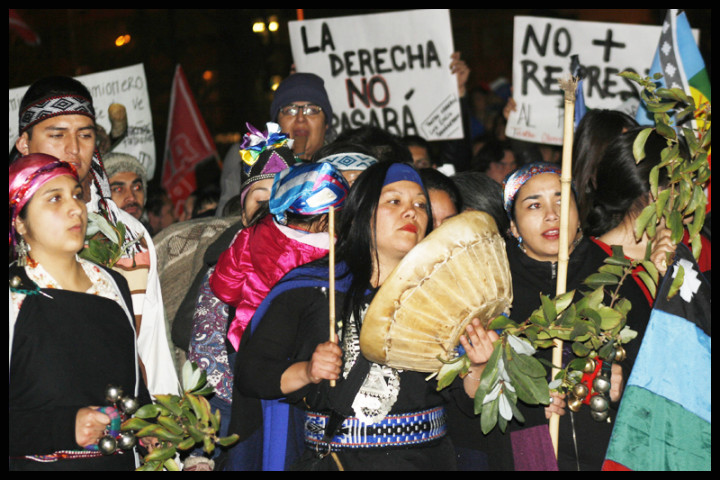 En plaza Italia se reunieron agrupaciones Mapuches para declarar que ellos no son terroristas, que es una jugada más de la gente de derecha, los camioneros, quienes destruyen y violentan a las familias sin importarles los niños ni ancianos, declaran que es una maquinación de la prensa y de la derecha chilena culpando al pueblo Mapuche. Realizaron una ceremonia con discursos y rogativas al comenzar la marcha hacia la moneda, carabineros reprimió fuertemente éste acto.