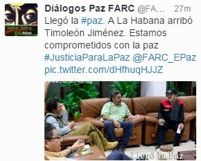 Lo que podría derivar en la histórica foto del apretón de manos entre Juan Manuel Santos y Timoleón Jiménez. Ambos se encuentran en La Habana.