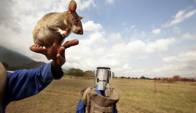 Peter Mushi, de 32 años, es uno de los cuidadores de los roedores. Había oído muchas historias de accidentes relacionados con minas antipersonas, en su mayoría retazos de la guerra civil de Mozambique, terminada en 1992, donde estas ratas han logrado desactivar minas. La Campaña Internacional para la Prohibición de las Minas Terrestres apunta que, desde 1999, estos dispositivos han sido responsables de 73.576 muertes, sin contar las personas amputadas o con heridas. En un año han sido 5.426 víctimas, y una quinta parte se produce en África.