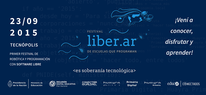 El Ministerio de Educación de la Nación, a través del Plan Nacional de Inclusión Digital Educativa (PNIDE), el portal educar y el sitio Conectados, llevará adelante el Festival de Robótica y Programación “Liber.ar”, el miércoles 23 de septiembre en Tecnópolis, entre las 12 y las 20 h..
