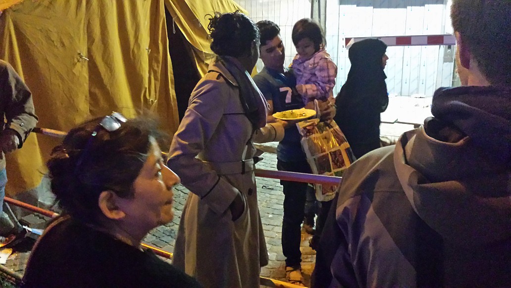 Otro alemán hablaba de qué importante es darle la bienvenida a esta gente que ha sufrido tanto, hacerles sentir que no están solos y que nos alegramos que estén aquí. Alemania tiene mucho espacio y seguro que encontrará la forma de ayudar. También había una pareja que repartían dulces y frutas a los niños y a la gente que se veía que por el largo viaje ya estaban cansados, una experiencia inolvidable.