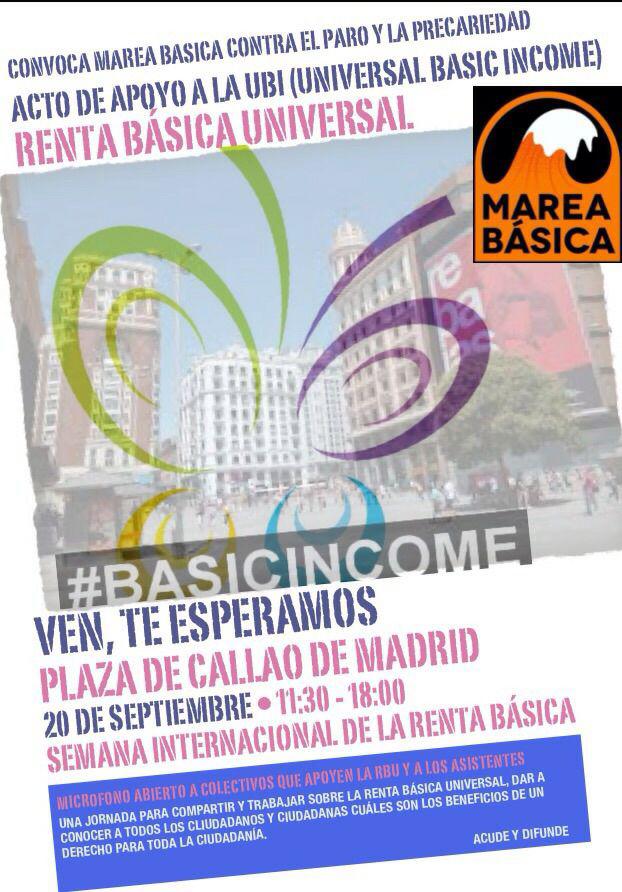 El próximo domingo, 20 de septiembre, tendrá lugar en la madrileña Plaza de Callao (Madrid) el cierre de la Semana de la Renta Básica con un acto que durará desde el mediodía hasta las seis de la tarde.