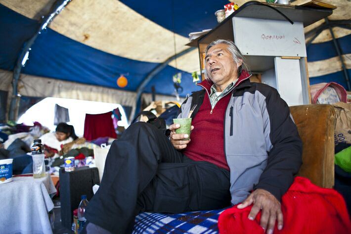 Nosotros no nos sentimos representados por estos hombres y mujeres que hoy están disputando la presidencia. Lo que queremos es que sea un gobierno más humano, porque creemos que la política tiene que estar centrada en la vida de las personas y no en las cuestiones económicas. Con cualquier gobierno que asuma tenemos la responsabilidad de demostrar que somos preexistentes, que tenemos necesidad de ser escuchados y de que se resuelvan nuestros problemas territoriales, por esa razón estamos acampando acá, por el territorio que ha sido despojado. Desde que se colonizó el continente, nuestro territorio ancestral está en manos de empresas internacionales.