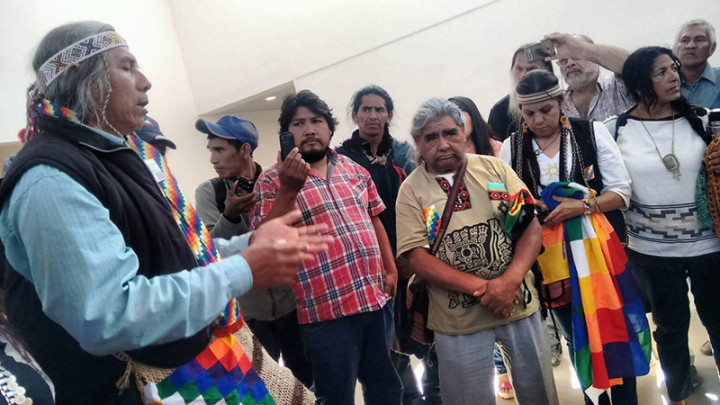 Lxs líderes, liderezas, representantes, autoridades y vocerxs indígenas de los pueblos- nación Qom, Mocoví, Mbya Guaraní, Aba Guaraní, Chorote, Tapiete, Wichí, Nivaclé, Qolla, Diaguita, Tafies, Lules, Kechua, Huarpe, Mapuce, Chane, Pilagá, Aymara, Kamichingón, Rankulche y Wenayek hemos decidido realizar una ocupación pacífica en las oficinas del Instituto Nacional de Asuntos Indígenas (INAI), en el predio de la ex ESMA, y nos declaramos en estado de asamblea permanente, ante la falta de respuesta del titular del Ministerio de Derechos Humanos, Claudio Avruj.