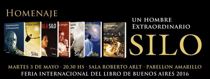 En la semana en que se celebra el 47 aniversario de la primera arenga pública dada por Silo en 1969 llamada «La curación del sufrimiento», tendrá lugar en la Feria Internacional del Libro de Buenos Aires edición 2016 un Homenaje a Silo, organizado por Editorial Leviatán. El evento se realizará el próximo martes 3 de mayo a las 20.30 en la Sala Roberto Arlt del Salón Amarillo del predio Ferial ubicado en Av. Santa Fe 4201 de la Ciudad de Buenos Aires