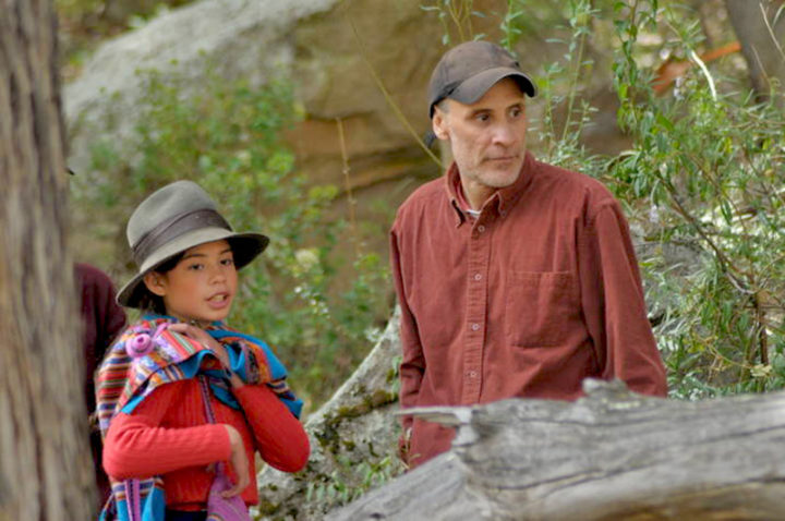 La pequeña Paulina Bazán debuta en el cine, aquí junto al director Manuel Siles. Foto cinencuentro