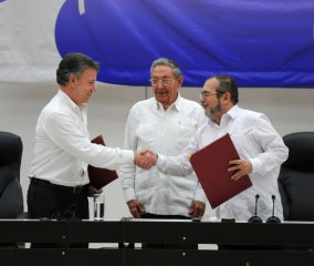 Con sede permanente en la capital cubana, las conversaciones entre representantes gubernamentales y de las FARC-EP comenzaron en 2012 y -a juzgar por sus progresos- podrían terminar satisfactoriamente en fecha cercana luego de haber conciliado posiciones, además, en los temas de reforma rural integral, participación política, combate contra el tráfico ilícito de drogas y víctimas.