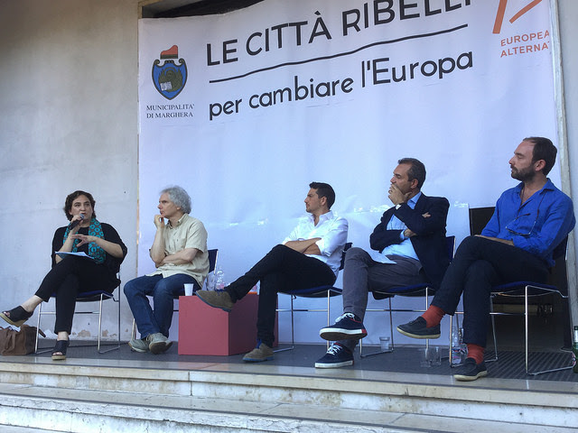 Por la tarde, la alcaldesa intervino en un debate abierto, ante 300 personas, con el alcalde de Nápoles, Luigi de Magistris, en un acto que se celebró en la plaza del Mercado de Marghuera. En el debato, los alcaldes han reivindicado la fuerza del municipalismo para mejorar la calidad de vida de la ciudadanía. La alcaldesa ha recordado que el 70% de la población europea vive en grandes áreas urbanas y ha alertado que si los Estados quieren tener éxito en los retos globales, como por ejemplo la lucha de las desigualdades o el cambio climático, no sólo tienen que escuchar la voz de las ciudades, sino que tienen que trabajar de forma coordinada. «Las ciudades tienen capacidad, experiencia y conocimiento», ha recordado la alcaldesa, que ha explicado la mayor capacidad de los municipios para dar respuestas ágiles y en red, como ya se ha demostrado en la crisis de los refugiados, donde se ha demostrado que el caos ha sido cerrar las fronteras.