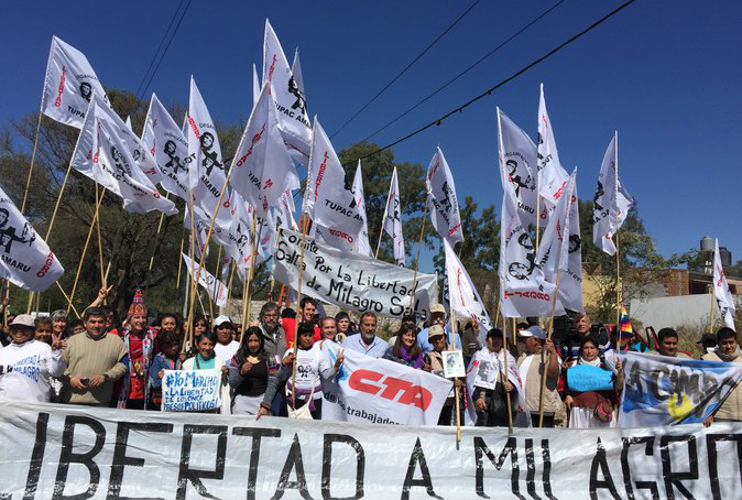 La CTA de los trabajadores informa que ya partieron hoy miércoles 31 de mayo las columnas provenientes del Noroeste, congregadas en el penal donde se encuentra presa Milagro Sala, referente de la organización barrial Tupac Amaru injustamente privada de su libertad por el gobierno provincial desde enero pasado. «Integrantes de la Organización Barrial Tupac Amaru, de la CTA, del Comité por la Libertad de Milagro Sala, del MTL, del Partido Comunista, de La Cámpora, de Resistiendo Con Aguante, Organismos de DDHH y otras organizaciones se congregaron en las afueras del Penal de Alto Comedero en San Salvador de Jujuy para dar forma a la columna del NOA de la Marcha Federal», se informa desde CTA.
