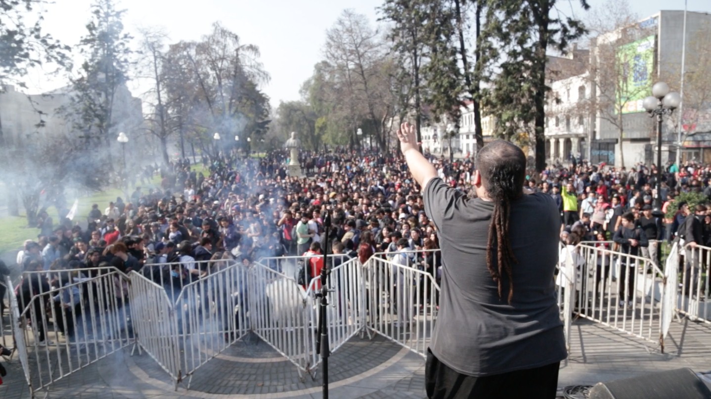 Se oyen los gritos, cantos y sirenas. Todo lo que està pasando, pasa muy ràpido. La Confech, la Corpade y otros representantes bàsicamente formulan las demandas: mobilización, lucha y especialmente no repetir los errores de los predecesores. Los discursos llaman a la unidad, mientras una masa cada vez mayor de estudiantes escucha. Todos ellos comparten los costos exhorbitantes de la educación en Chile. Todos ellos comparten las desventajas de los procedimientos pedagógicos. Todos ellos comparten la vibra de la situación, que se vuelve màs agitada cerca del escenario.