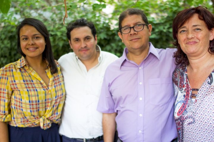Durante la entrevista en Barcelona sobre el Acuerdo de Paz en Colombia. De izquierda a derecha: Lorena Medina (Pressenza), Mauricio Herrera, José Arley, Antonia Utrera (Pressenza). Foto: Pedro Muñoz