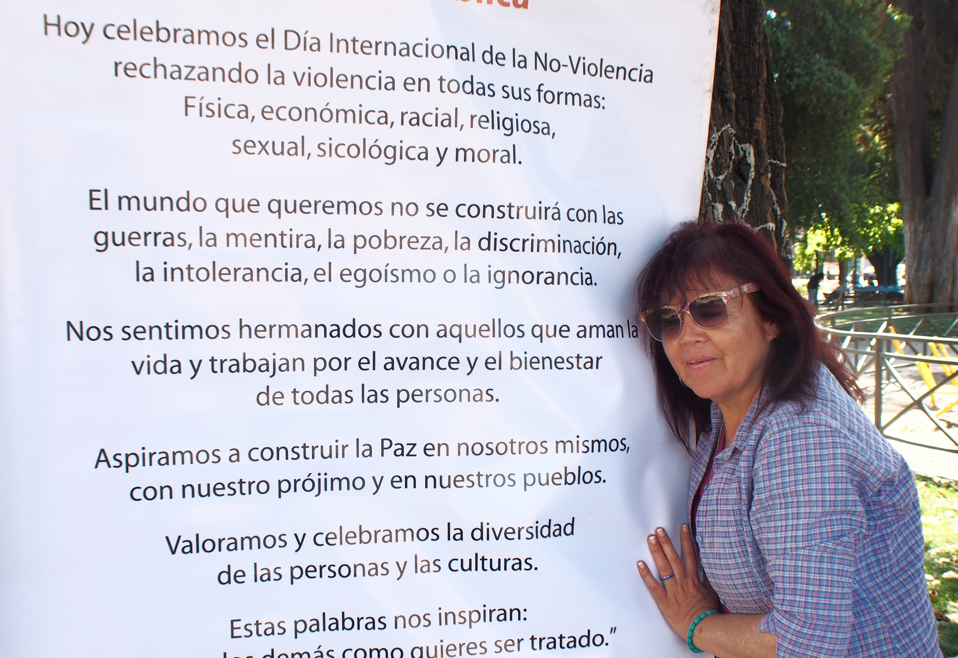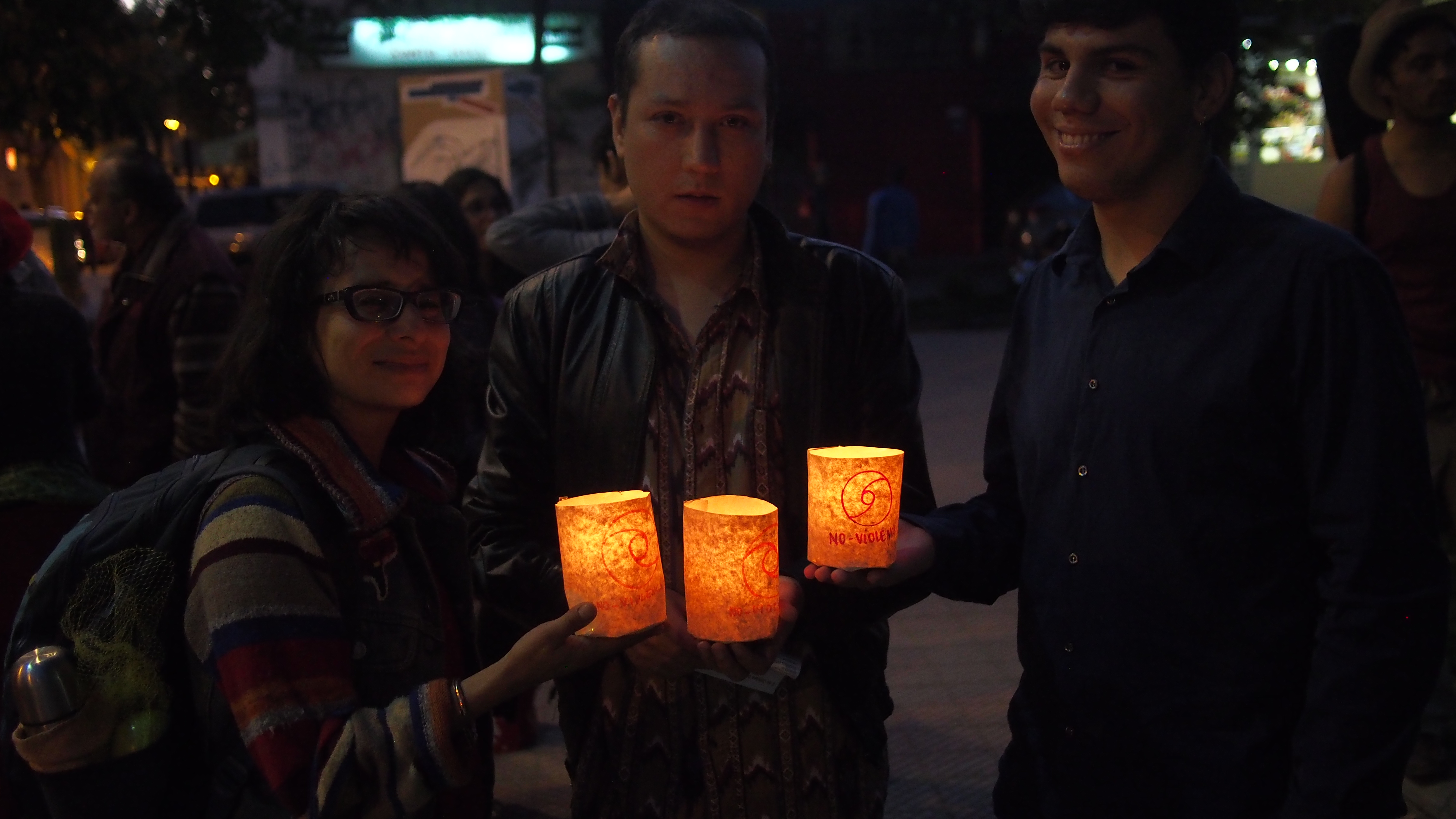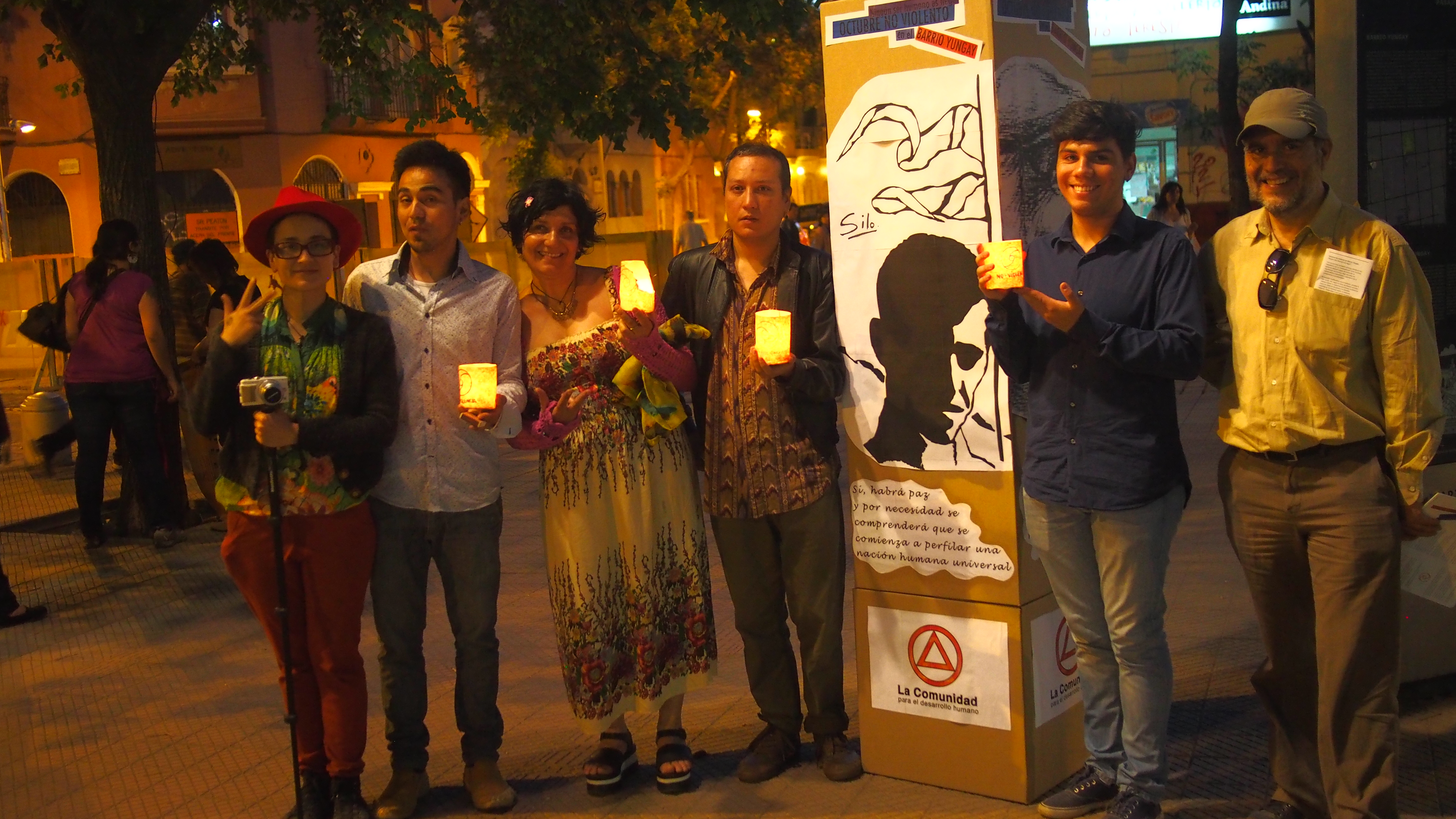 Con el símbolo de la noviolencia y una ceremonia de pedido por la paz fueron las actividades que dieron partida al mes de la Noviolencia llamado “Octubre Noviolento en el Barrio Yungay” en Santiago de Chile afirmado con con la frase fuerza «Ningún ser humano es ilegal»