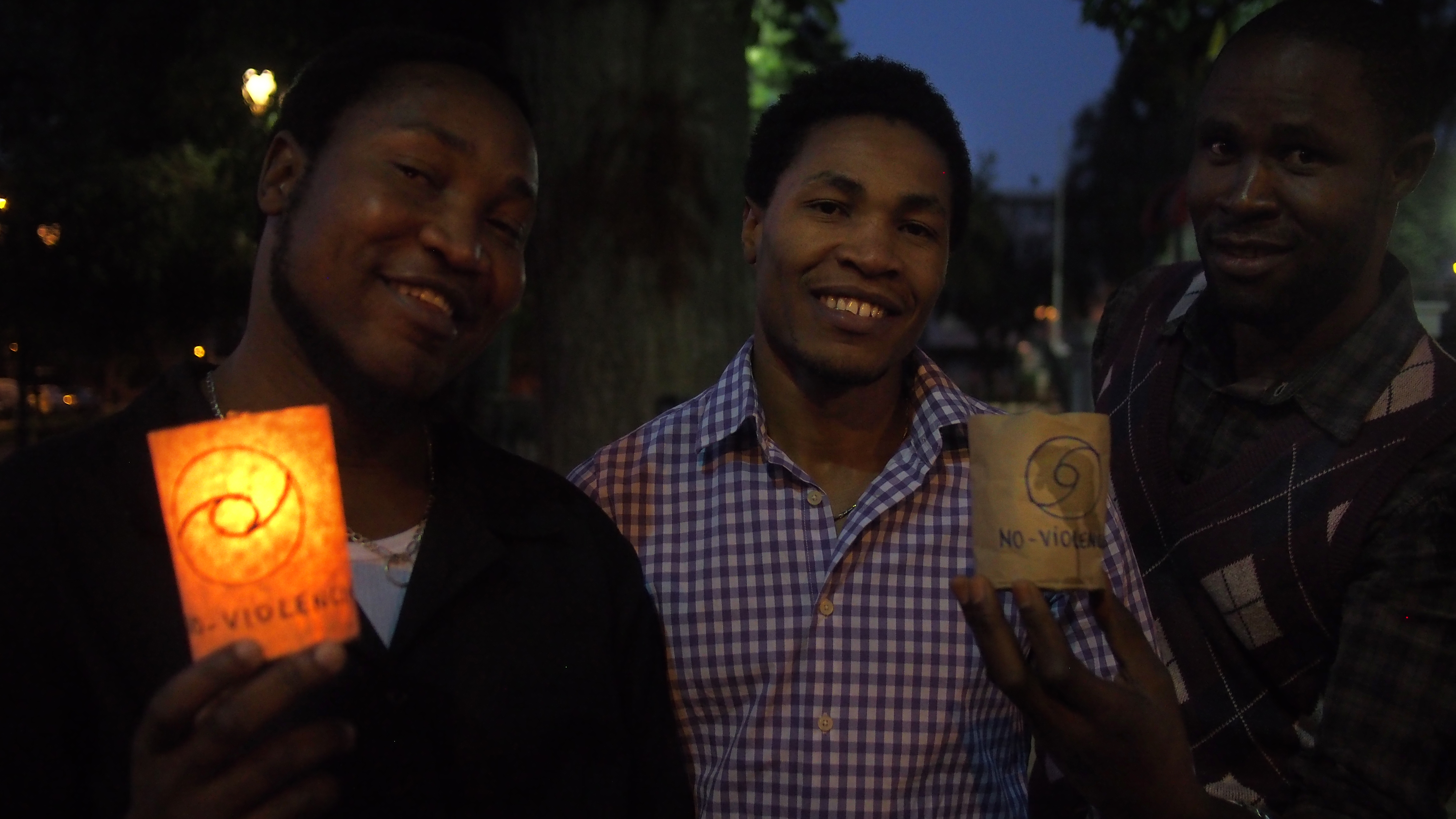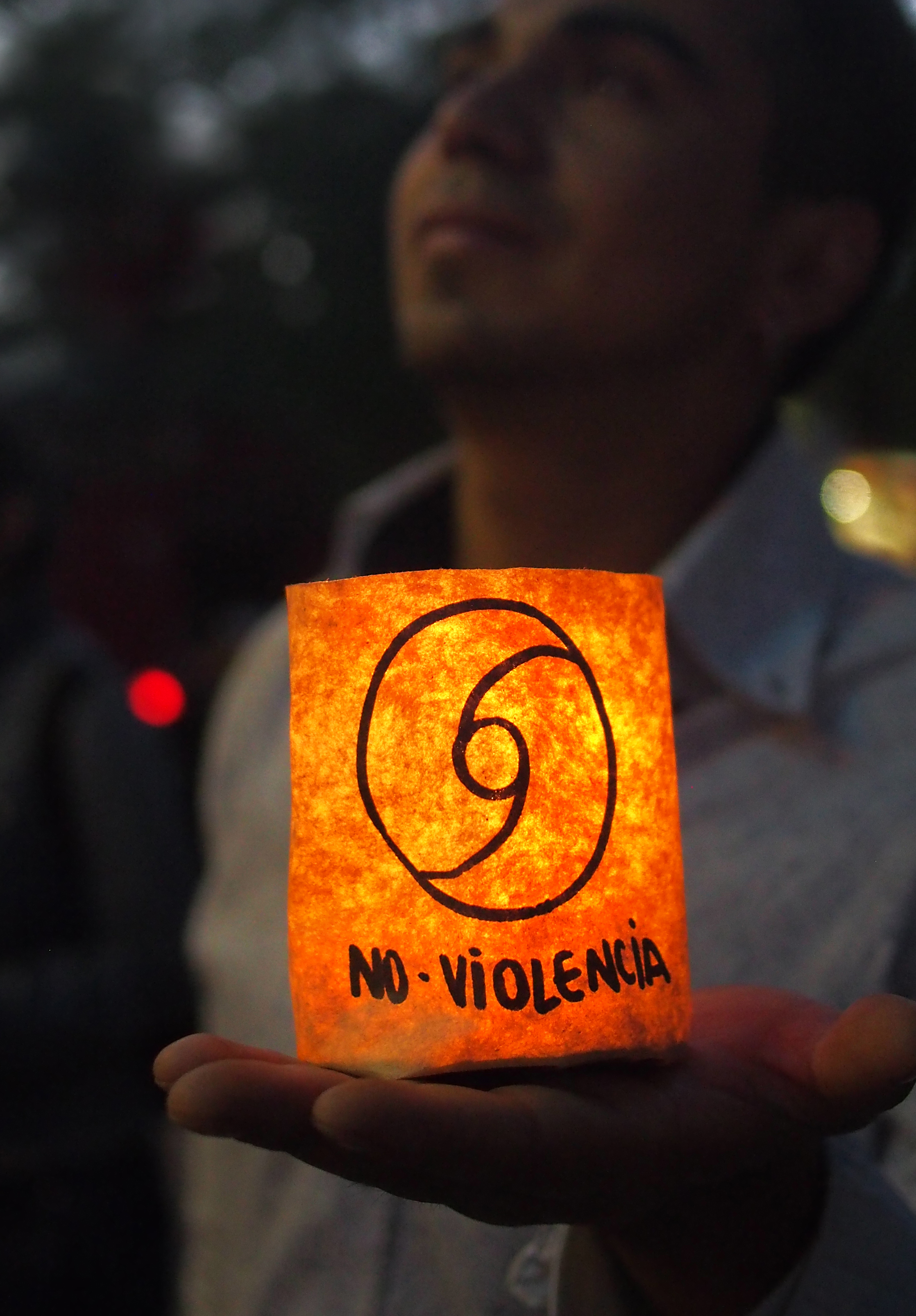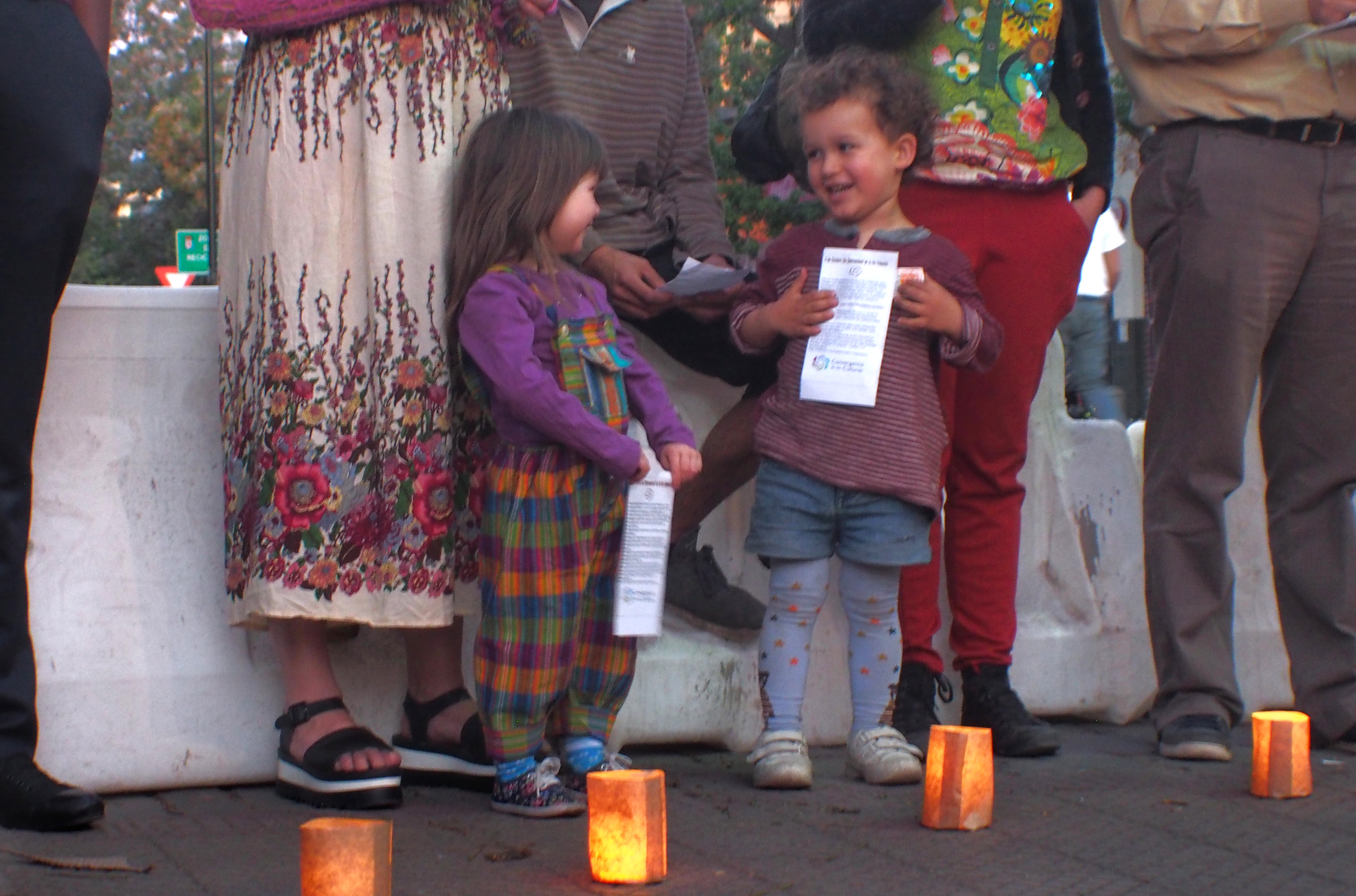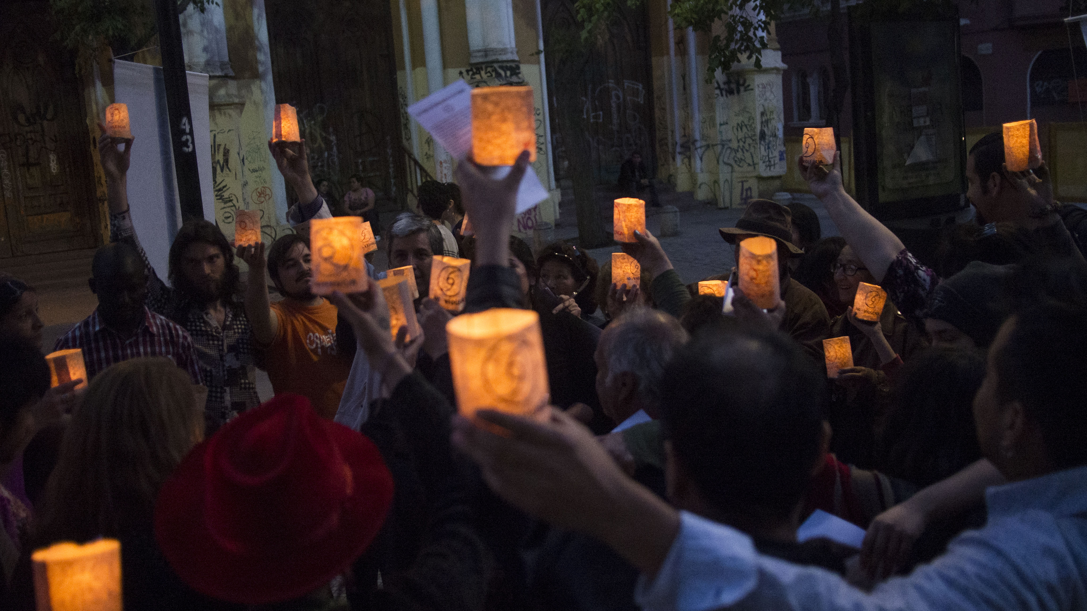 Con el símbolo de la noviolencia y una ceremonia de pedido por la paz fueron las actividades que dieron partida al mes de la Noviolencia llamado “Octubre Noviolento en el Barrio Yungay” en Santiago de Chile afirmado con con la frase fuerza «Ningún ser humano es ilegal»