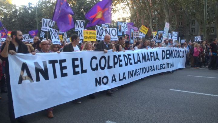 Con este eslogan y al mismo tiempo que el Parlamento elegía una vez más como presidente a Mariano Rajoy, ha tenido lugar en Madrid una manifestación como protesta por esta investidura. Una manifestación que se ha desarrollado pacíficamente mientras cientos de policías rodeaban el Congreso para «proteger» no se sabe de qué a los señores diputados.